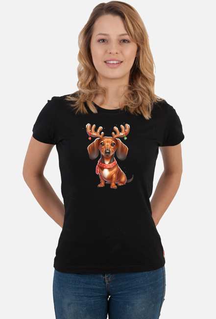 Jamnik renifer: najsłodszy świąteczny zwierzak SKU: koszulka-damska-K02_j8t4w2hj_4723454