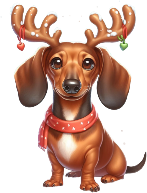 Ten uroczy jamnik jest gotowy na Boże Narodzenie! Dzięki rogom renifera i świątecznemu szalikowi jest idealnym świątecznym dodatkiem do każdego domu.