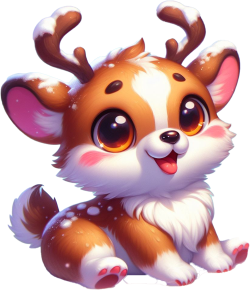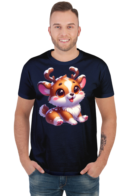 Ten uroczy Corki jest gotowy do świętowania Bożego Narodzenia! Ma duże, zwisające rogi renifera. Na jego pysku widać szeroki uśmiech, a jego jęzor wystaje na bok. Wygląda, jakby miał zaraz zacząć bawić się swoimi zabawkami. Grafika ta to idealny sposób na dodanie świątecznego klimatu do każdego pomieszczenia.
